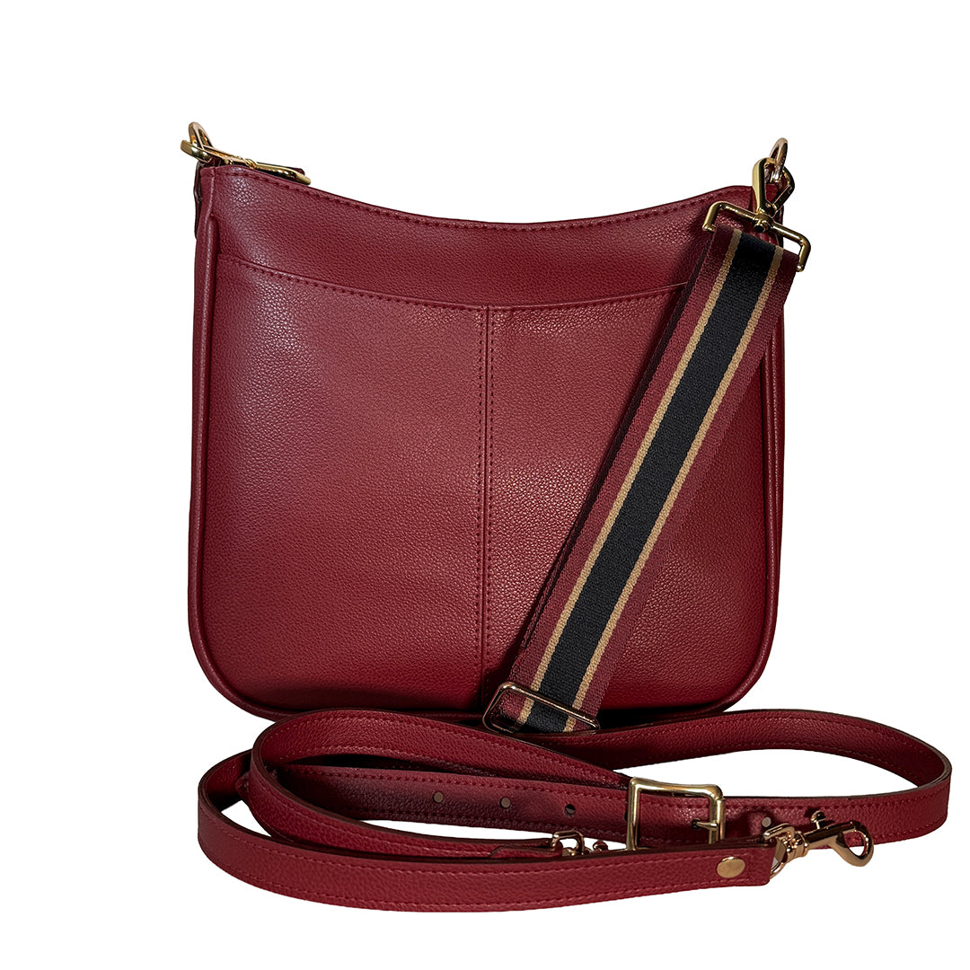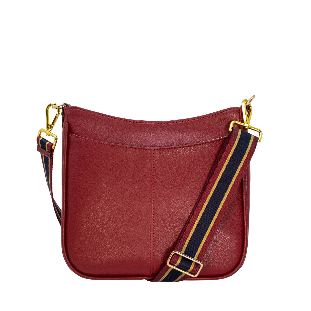 Made from premium Italian pebbled vegan leather, the bag features a secure top zipper, a spacious exterior slip pocket, and an interior zip pocket to keep essentials organized. Subtle piping accents the curved shape, adding structure and durability without excess.